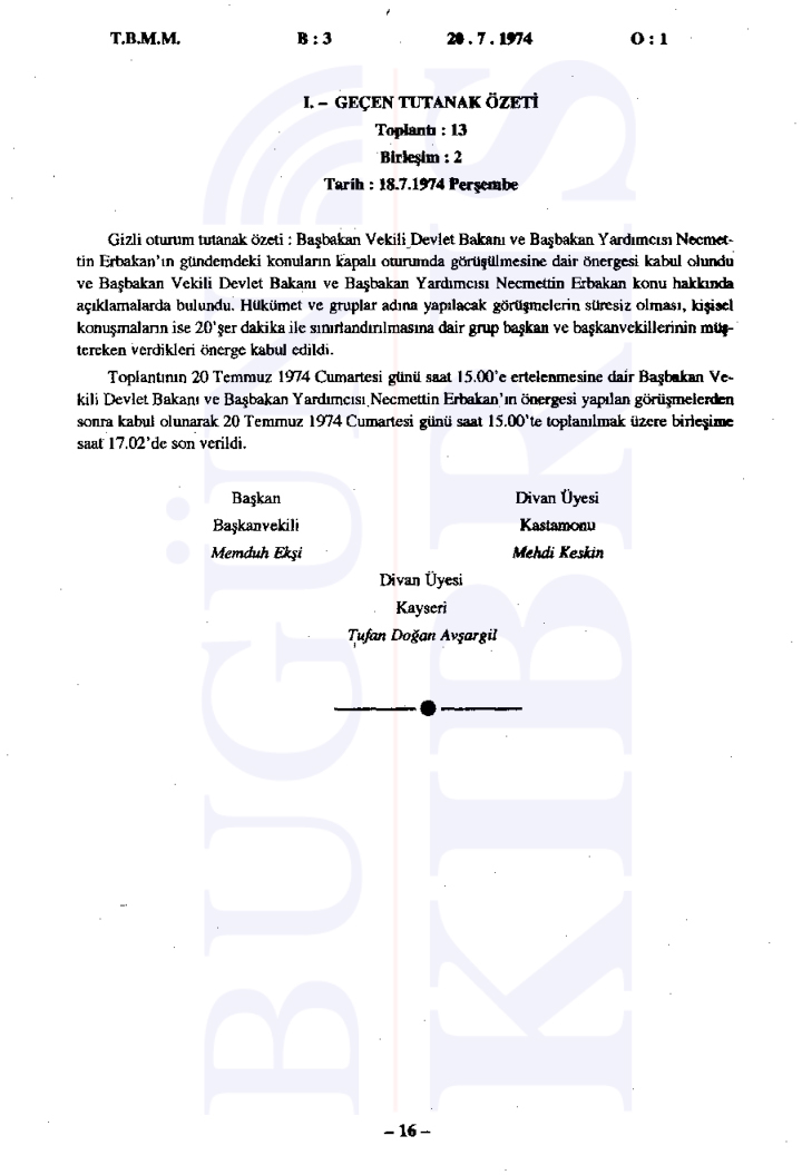İşte tarihi oturumların tutanakları: