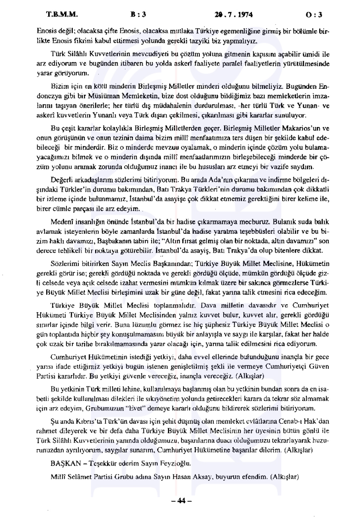 20 Temmuz 1974 TBMM Gizli Oturum Tutanakları: Türkiye’nin Kıbrıs’a müdahalesi başladı