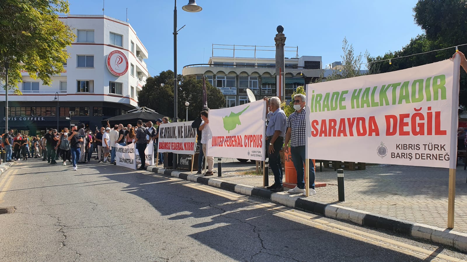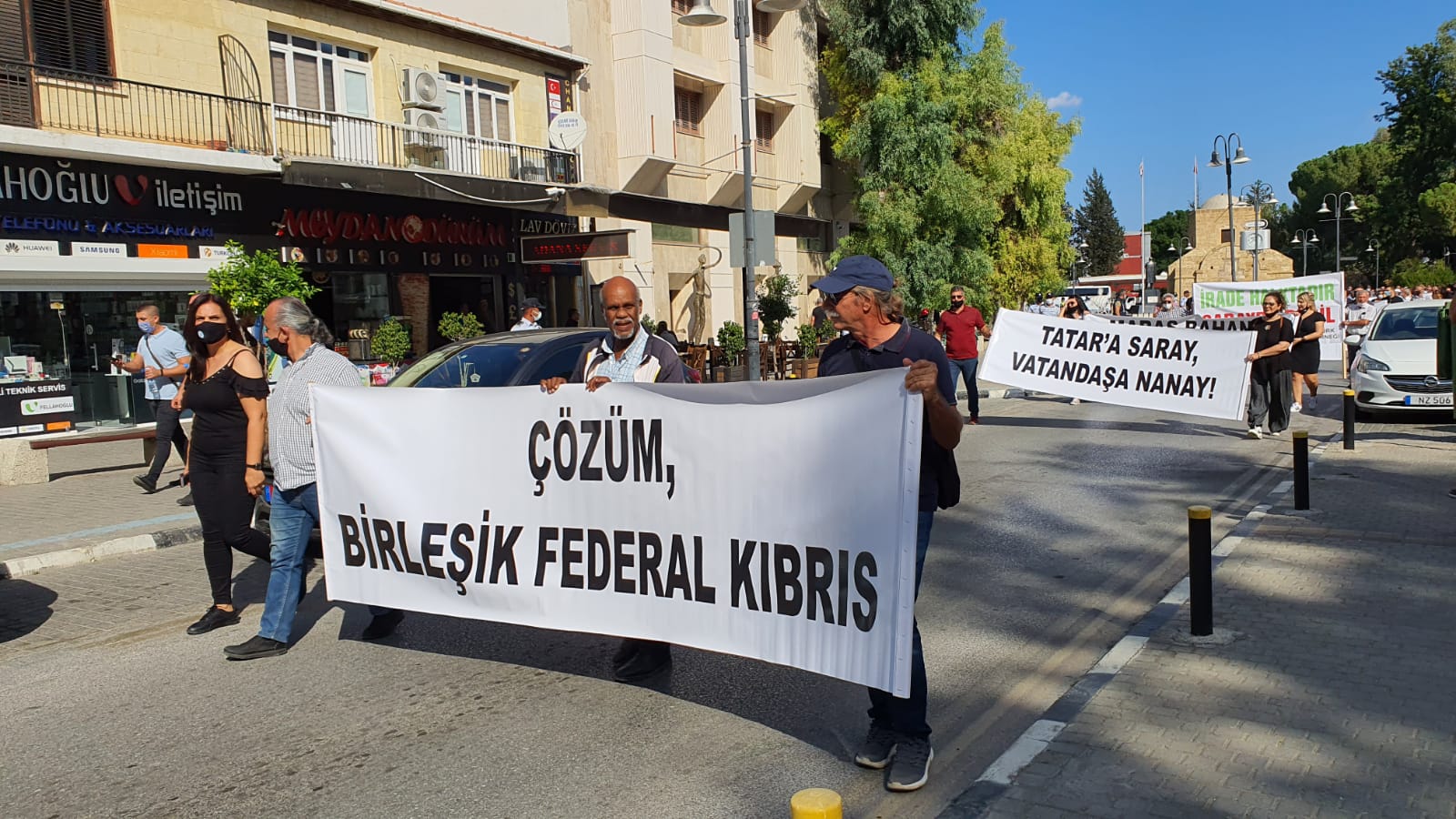 Bu Memleket Bizim Platformu, “İrademize saygı için, kukla yönetime tepki için, asimilasyona ve entegrasyona hayır demek için” Kuğulu Park’ta toplanarak Dikilitaş’a yürüdü. Yüzlerce katılımcı hükümeti ve cumhurbaşkanlığındaki Tatar’ı istifaya çağırdı. Federal çözümü vurgulayan ve Türkiye’nin müdahaleleri ile seçtirilen Tatar’a karşı pankartlar taşındı.