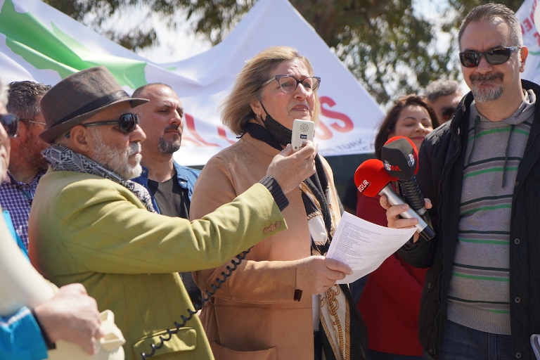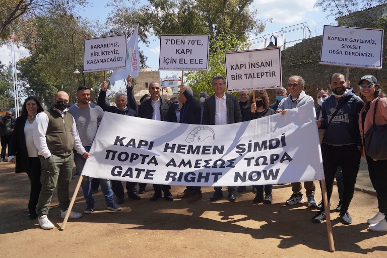 Mağusa Kapısı’nda yapılan ortak açıklamayı KTÖS Genel Başkanı Emel Tel okudu. Açıklama şöyle: