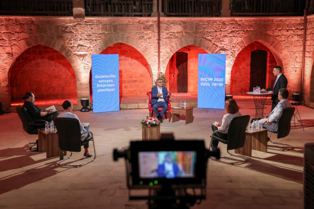 CTP’nin cumhurbaşkanı adayı Tufan Erhürman, 1 Eylül akşamı canlı yayında kritik başlıklarda net mesajlar verdi. Lefkoşa’da Kumarcılar Han’ında gerçekleşen üç saatlik özel yayın çok sayıda yayın kuruluşu tarafından canlı verildi. Moderatörlüğünü Mustafa Alkan’ın üstlendiği yayında gazeteciler Cüneyt Oruç, Damla Soyalp, Nazar Erişkin ve Ulaş Barış, Erhürman’a merak edilen soruları yöneltti.