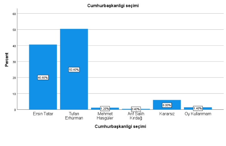 Anketin yapıldığı dönemde adaylıklarını açıklamış isimler arasında, olası bir cumhurbaşkanlığı seçiminde CTP Genel Başkanı Tufan Erhürman’ın önde olduğu görüldü.