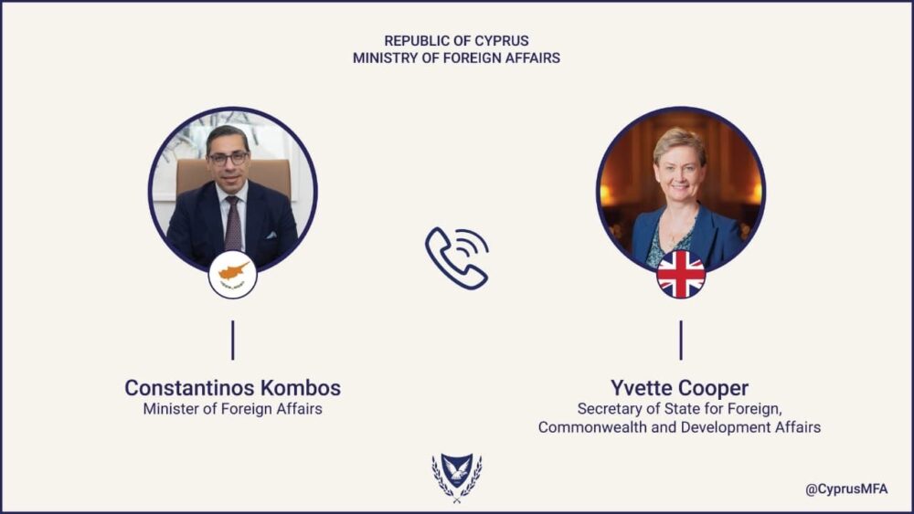 Kıbrıs Dışişleri Bakanlığı’nın açıklamasına göre, Dışişleri Bakanı Konstantinos Kombos ile Birleşik Krallık’ın yeni Dışişleri, Milletler Topluluğu ve Kalkınma Bakanı arasında yapılan ilk telefon görüşmesinde, taraflar Kıbrıs sorunundaki son gelişmeleri ve Orta Doğu’daki durumu ele aldı. Görüşmede, iki ülke arasındaki stratejik ilişkilerin derinleştirilmesi konusundaki kararlılık da vurgulandı.