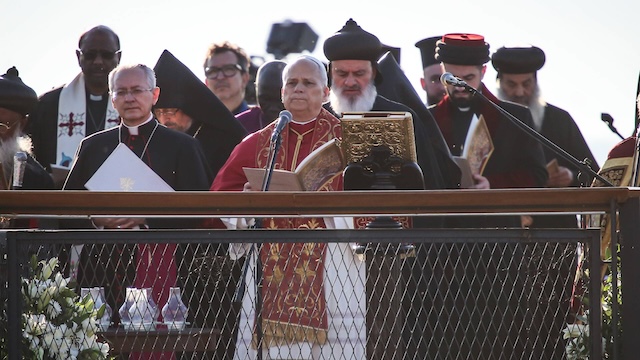 Fener Rum Patriği Bartholomeos ve yetkililerin eşlik ettiği Papa 14. Leo, batık bazilika kalıntısının olduğu bölgede düzenlenen ayine katıldı.