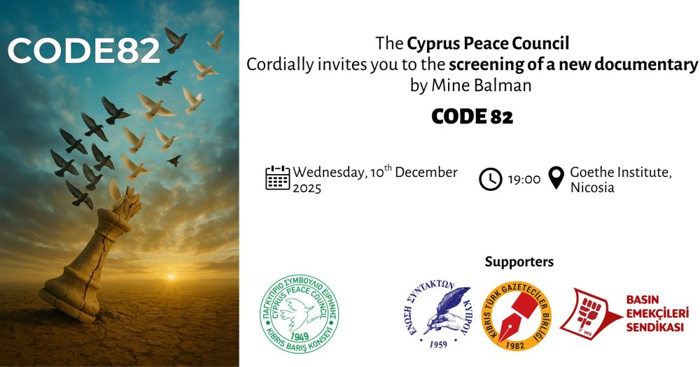 Kıbrıs Barış Konseyi, yönetmen Mine Balman’ın yeni belgeseli KOD 82 için 10 Aralık Çarşamba günü Goethe Institute, Lefkoşa’da özel bir gösterim düzenliyor. Saat 19.00’da başlayacak etkinlik, yalnızca film sunumu değil, aynı zamanda Kıbrıslı Türklerin maruz kaldığı giriş yasaklarının demokrasi, ifade özgürlüğü ve siyasi katılım üzerindeki etkilerine dair kapsamlı bir paneli de içeriyor.