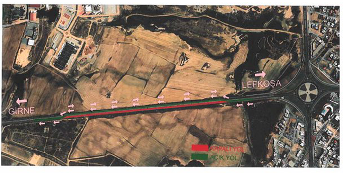 Açıklamada, trafiğin ekte sunulan krokide gösterildiği şekilde, Lefkoşa geliş güzergâhındaki iki şeritten kontrollü olarak geliş ve gidiş şeklinde sağlanacağı belirtildi.