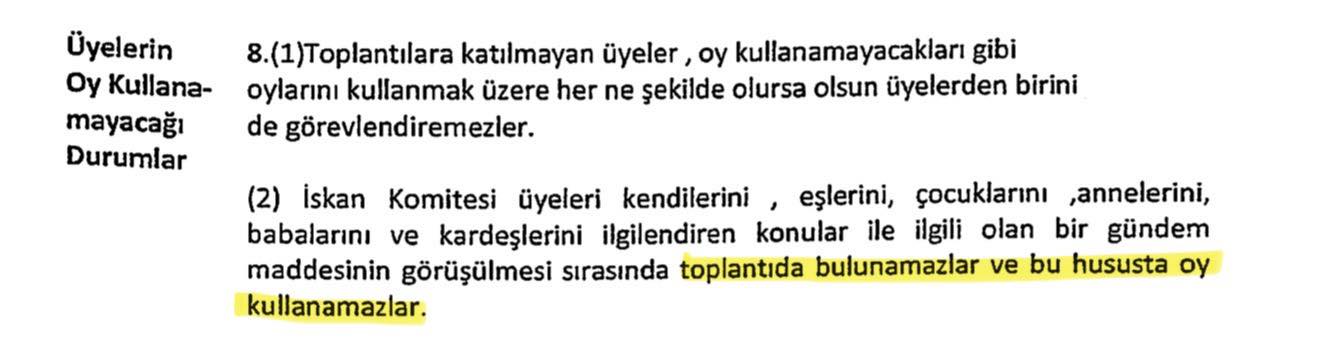 “Fakat buna rağmen Komite Başkanı sıfatıyla Halis Üresin eşinin dilekçesini inceleyen komiteye başkanlık ediyor, karar aldırıyor ve imza bile atıyor!