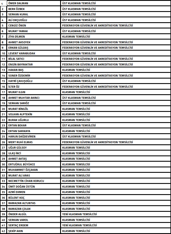 “Türkiye Futbol Federasyonu’nca yürütülen bahis soruşturması kapsamında futbol dalında bahis oynadığı tespit edilen ve aşağıda isimleri yer alan 42 Temsilcinin Futbol Disiplin Talimatı’nın 57. maddesi uyarınca 26.12.2025 tarihinden itibaren tedbirli olarak PFDK’ya sevk edilmesine karar verilmiştir.