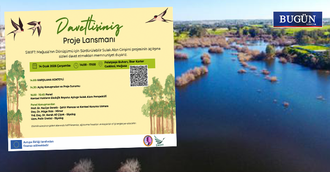 Avrupa Birliği’nin Kıbrıs Türk toplumuna yönelik AB Mali Yardım Programı kapsamında desteklenen ve Mağusa Kadın Merkezi Derneği (MAKAMER) tarafından yürütülen Mağusa’nın Dönüşümü için Sürdürülebilir Sulak Alan Girişimi (SWIFT) projesi, lansman etkinliğiyle kamuoyuyla buluşacak. Lansman, 14 Ocak 2026 Çarşamba günü 14.00–17.00 saatleri arasında, Mağusa Polatpaşa Bulvarı’nda yer alan Durmuş İyimser Salonu’nda gerçekleştirilecek.