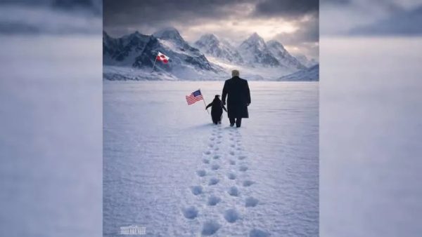 Beyaz Saray, ABD Başkanı Donald Trump’ın bir penguenle birlikte buzlu dağlara doğru yürüdüğü ve Grönland bayrağı bulunan yapay zekâ tarafından oluşturulmuş bir resim yayımladı. Ancak penguenler, Grönland’ın bulunduğu Kuzey Yarımküre’de değil Güney Yarımküre’de yaşadığı için gönderiye binlerce yorum geldi.