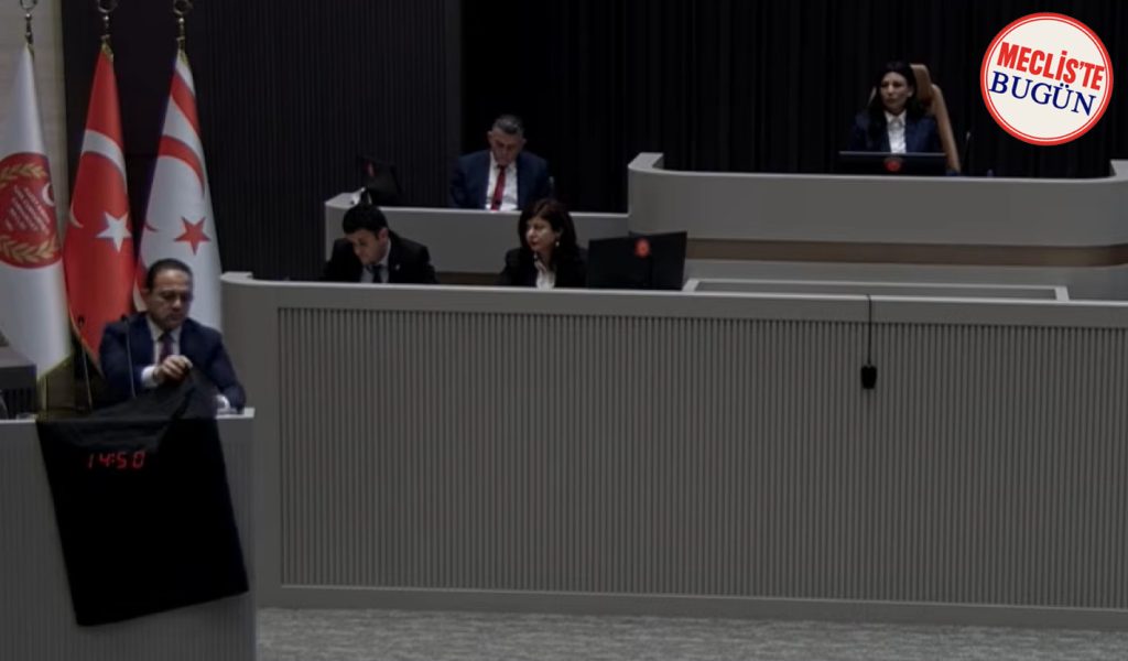 Meclis’te 18 saati aşkındır devam eden “Türkiye ile Kuzey Kıbrıs Türk Cumhuriyeti arasında imzalanan fiber optik protokolü” görüşmeleri sırasında ikinci sözünü alan CTP Grup Başkan vekili Erkut Şahali, kürsüye siyah bayrak asarak konuşma yapmak istedi. UBP sıralarından gelen tepki üzerine, oturumu yöneten Meclis Başkan Yardımcısı Fazilet Özdenefe, Şahali’ye iç tüzük gereği bunun yapılamayacağını ve bayrağı oradan indirmesi gerektiğini söyledi.