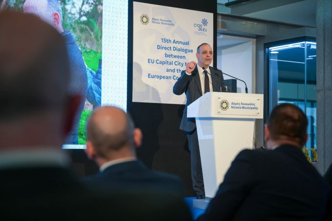 Lefkoşa Türk Belediyesi (LTB) Başkanı Mehmet Harmancı, güney Lefkoşa Belediye Başkanı Charalambos Prountzos’un davetiyle düzenlenen zirve kapsamında bir oturumda konuşma yaptı. Oturumda Avrupa Komisyonu Kıbrıs Çözüm Destek Birimi İş Birliği Müdürü Stefan Simosas’ın açılış konuşmasının ardından Prountzos ve Harmancı söz aldı.