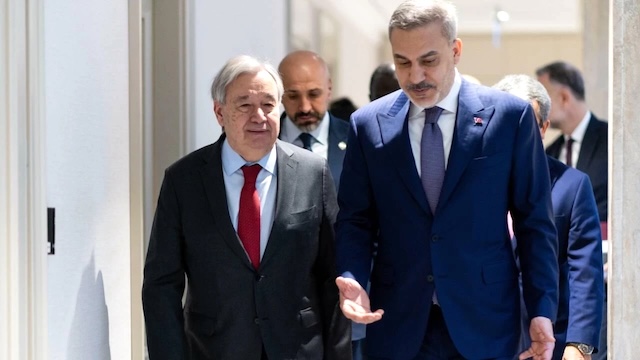 Türkiye Dışişleri Bakanı Hakan Fidan, ramazan ayı vesilesiyle Türkiye’ye dayanışma ziyaretinde bulunan BM Genel Sekreteri Antonio Guterres ile Bakanlık’ta bir araya geldi.
