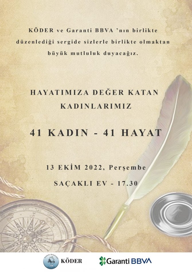 KÖDER (Kıbrıs Kadın Öyküleri Derneği) ile Garanti BBVA’nın birlikte düzenlediği “Hayatımıza Değer Katan Kadınlar – 41 KADIN – 41 HAYAT” sergisi 13 Ekim Perşembe günü Saçaklı Ev’de açılıyor. Yarattıklarıyla,eserleriyle,emekleriyle,mücadeleleriyle,duruşlarıyla geçmişin iş yaşamı, sosyal, kültürel, sanatsal ve ekonomik hayatında yer etmiş kadınlarımızın anılması, Kıbrıs Türk halkının tarihsel yapısının belgelenmesi, günümüze ve geleceğe aktarılması amacıyla 2 yıla yakın geçmişinde belgesel gösterimleri, kitap çalışması, sergiler ve eğitim çalışmaları düzenleyerek çıktığı yolda kararlı ve aktif bir şekilde ilerleyen KÖDER’in Garanti BBVA ile birlikte düzenlediği “Hayatımıza Değer Katan Kadınlarımız- 41 KADIN-41 HAYAT” sergisi 13 Ekim Perşembe günü saat 17:30’da Saçaklı Ev’de açılıyor.