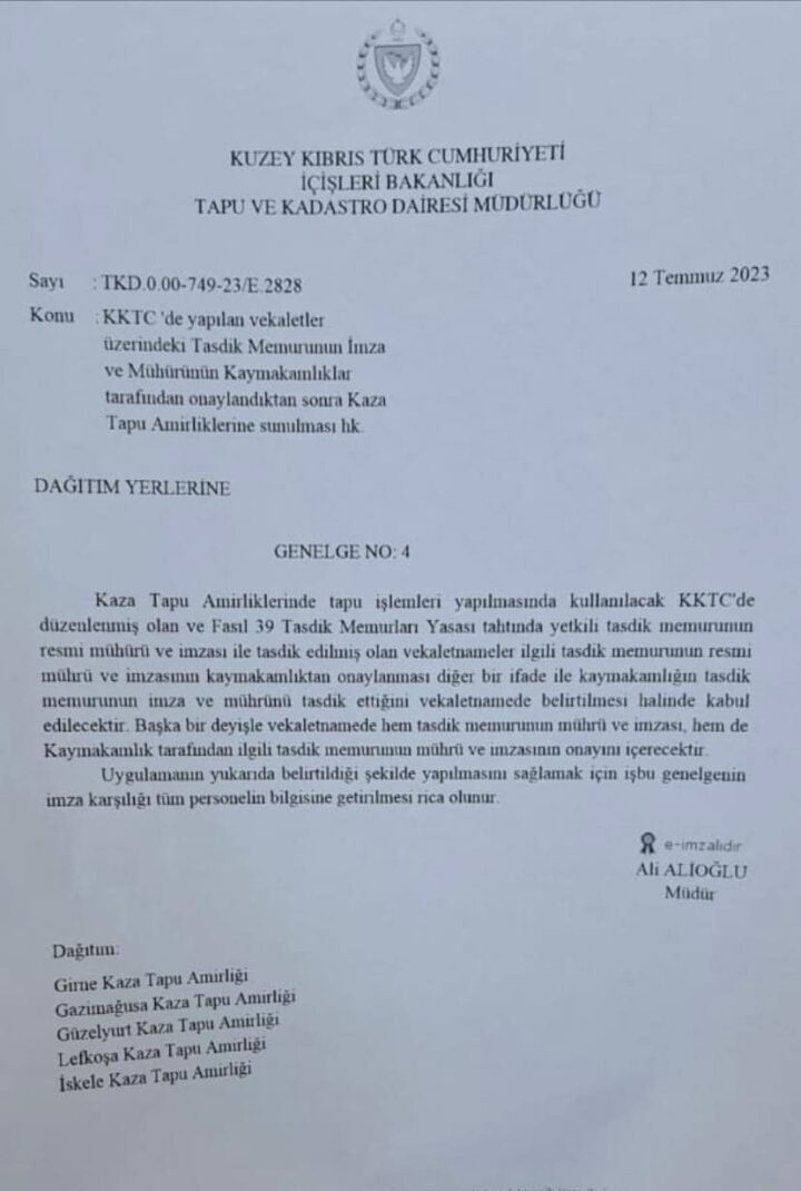 Baybars, bu genelgeyle devletin yetki verdiği tasdik memurlarının düzenlediği vekaletnamelerin Kaymakamlıklarca onaylanma zorunluluğu getirildiğini ve bu durumun yurttaşlara ek külfet yüklediğini ifade etti. Ayrıca, vekaletname ile yapılacak tüm tapu işlemlerini sekteye uğratan ve gecikmelere neden olan bir uygulama olduğunu söyledi.