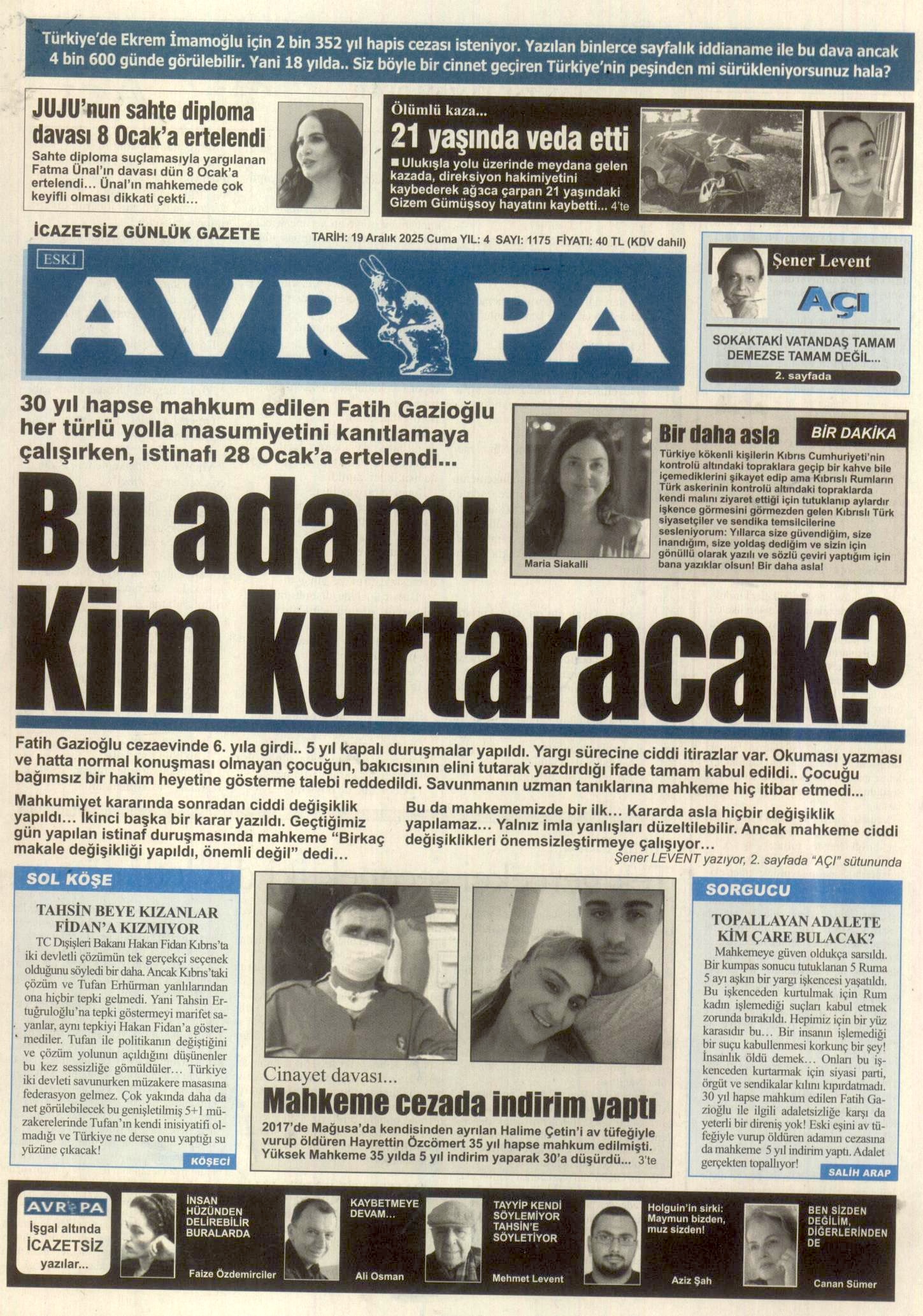 19 Aralık Cuma gazete ön sayfaları: