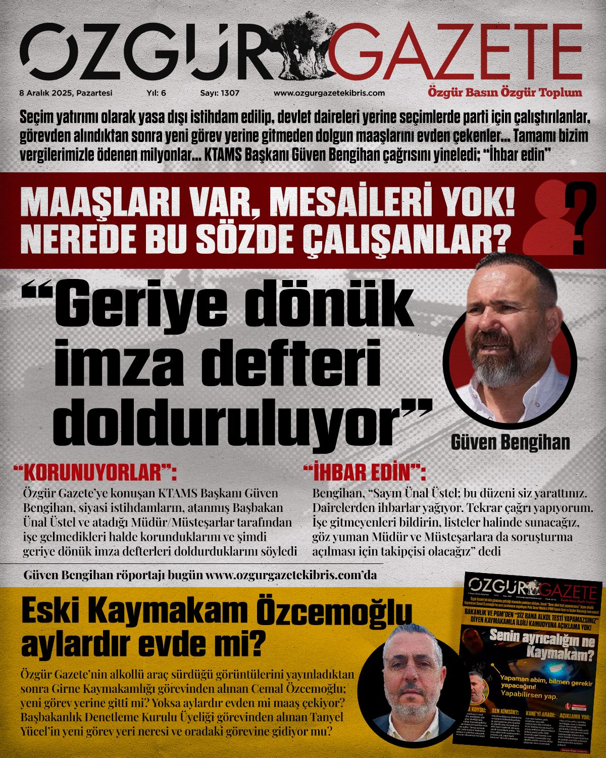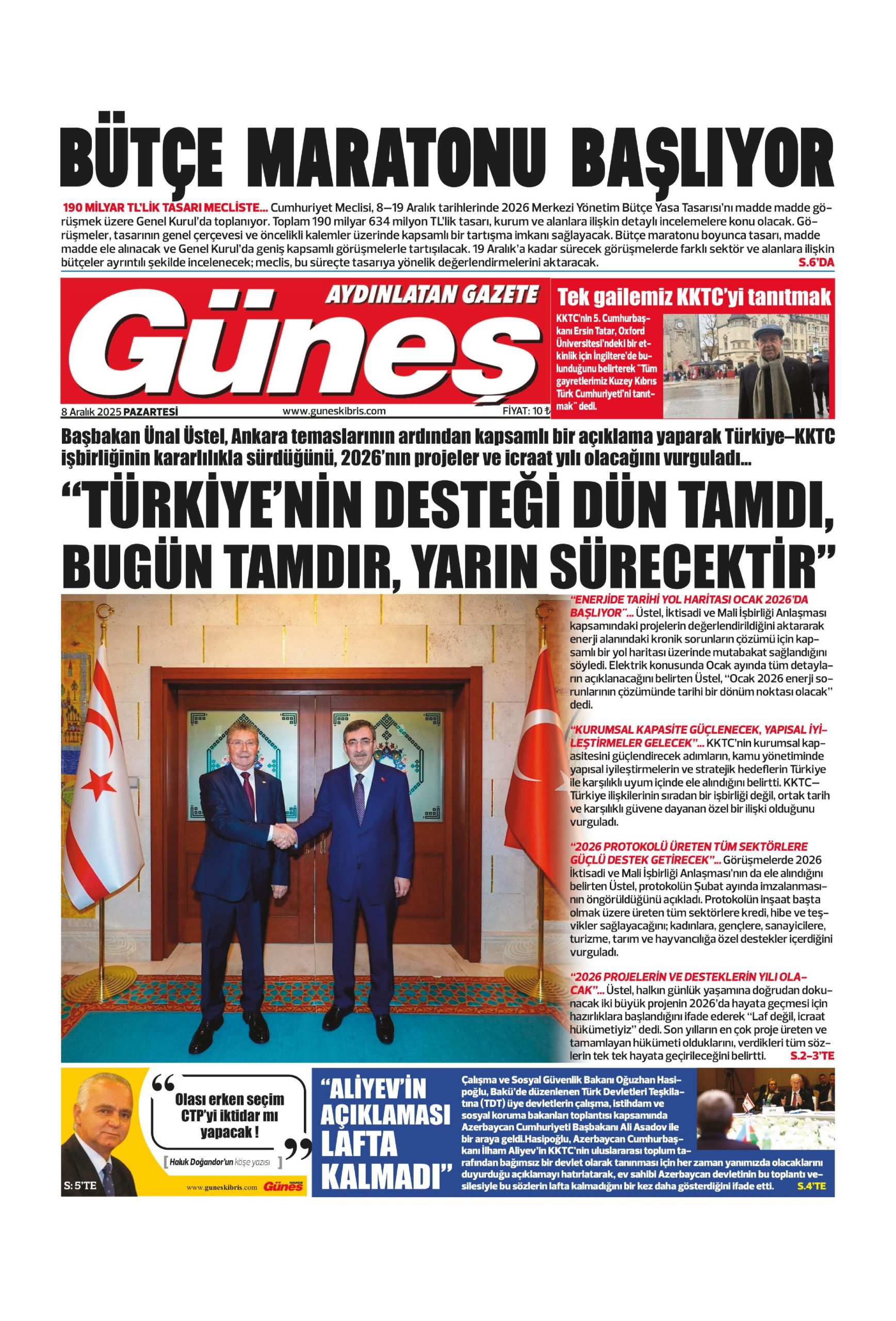 8 Aralık Pazartesi gazete ön sayfaları:
