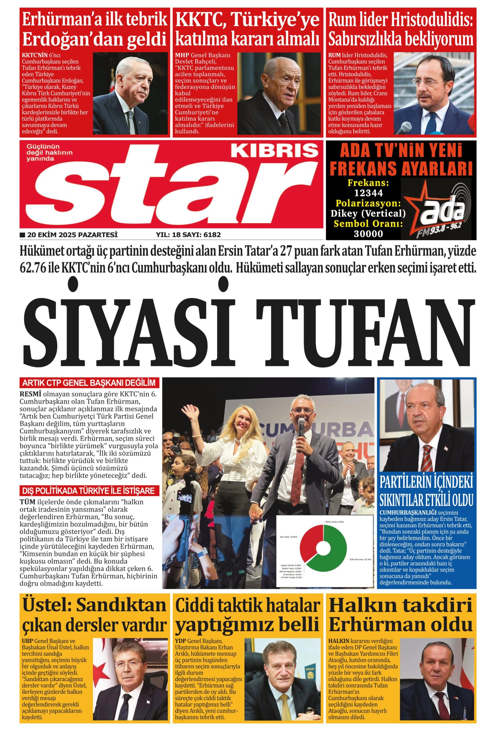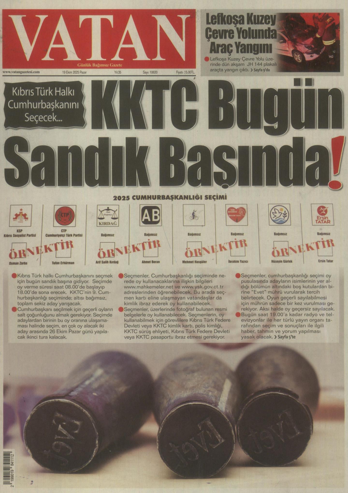 19 Ekim Pazar gazete ön sayfaları: