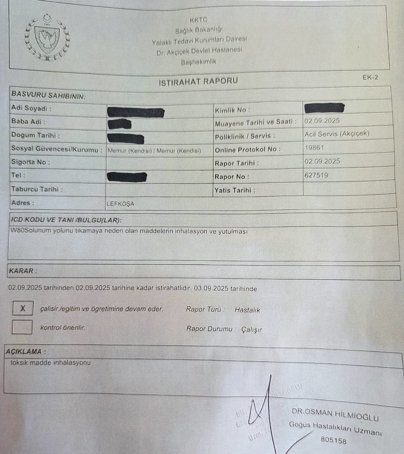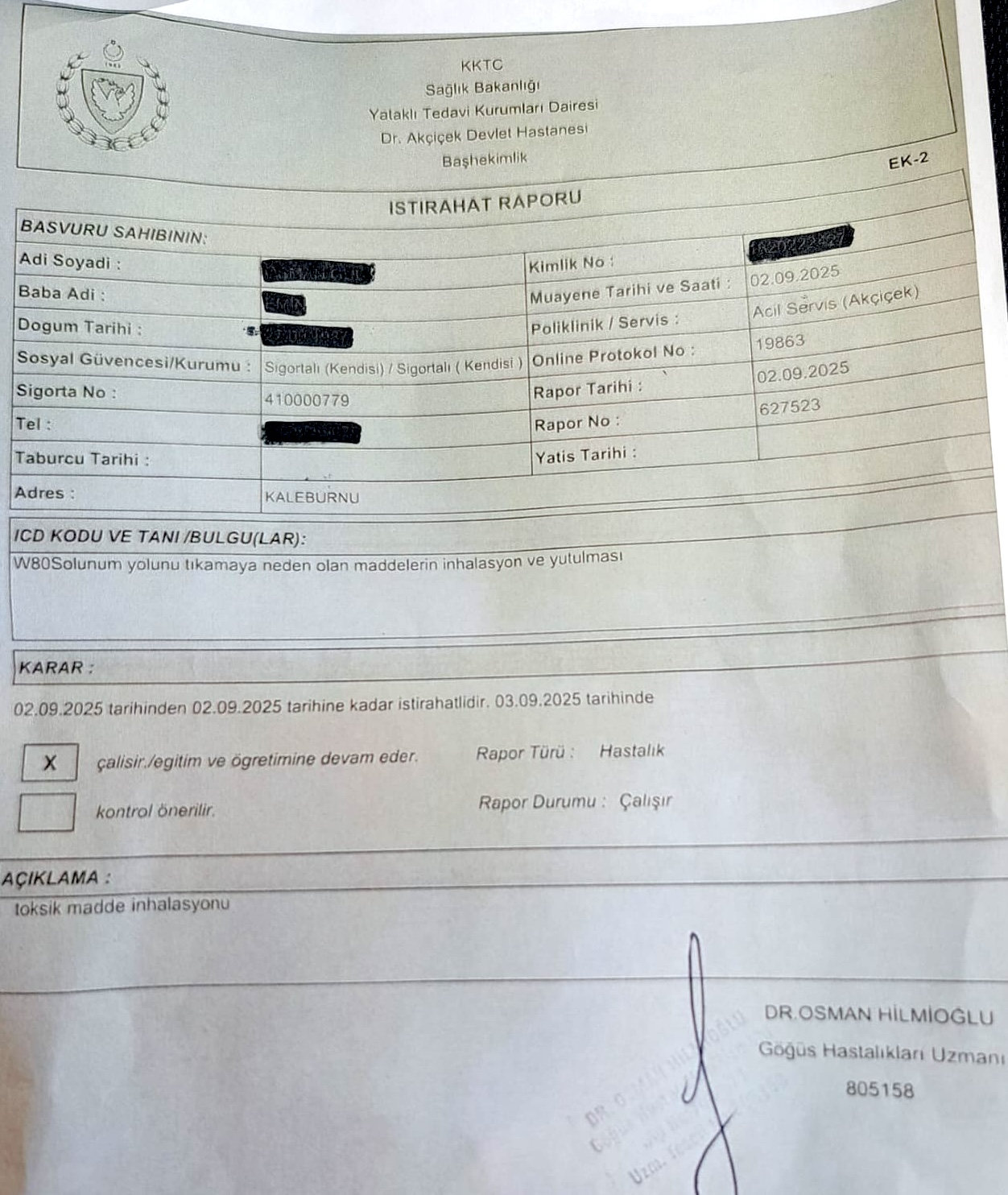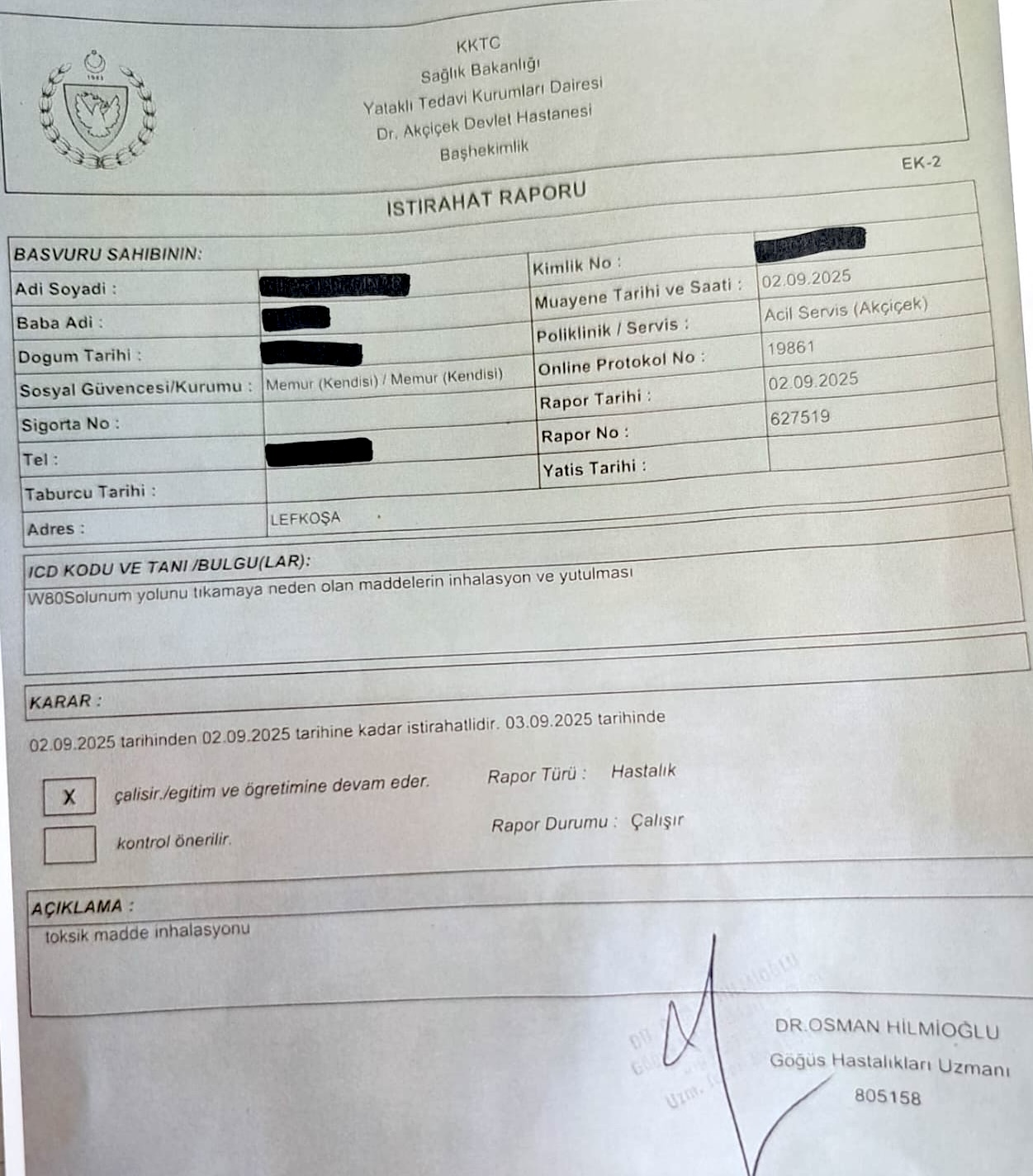 Elbette bazı arkadaşlarda hastalık olabilir ama bu klordan kaynaklı değildir. Çünkü ilk tetkikleri yapan doktorların raporları var. O raporlar açık. Hatta raporu yazan doktorun daha sonra yazdığı ek rapor da mevcut. Sağlık Bakanlığı’na gönderildi, yayınlandı. Yani gazla ilgili bir sorun olmadığı ortaya konuldu.